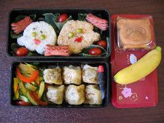 Очень простое в приготовление и очень патриотичное бенто называется "хиномару бенто" (хиномару - это флаг Японии). этом бенто на белом отварном рисе лежит кусочек красной отварной моркови или маринованная слива. Очень дешевая и здоровая пища.