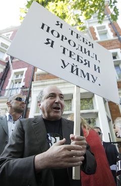 2. 2010. Борис Березовкий участвует в акции протеста у здания посольства России в Лондоне.