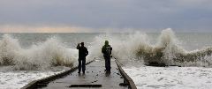 Терзавший Сочи два дня подряд шквалистый ветер “надул” сильный шторм на Черном море. Водная стихия обрушилась на побережье и вдребезги расколотилаВ облицованный мрамором парапет, гранитную брусчатку набережной и даже крыльцо расположенного здесь пивного ресторана.