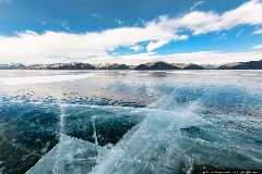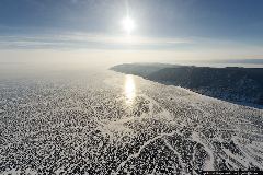 6. При сильном морозе трещины, имеющие местное название "становые щели", разрывают лёд на отдельные поля. Длина таких трещин — 10—30 км, а ширина — 2—3 м. Разрывы происходят ежегодно примерно в одних и тех же районах озера.