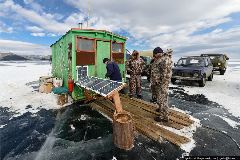 73. СС‚анция лимнологов на льду неподалёку от посёлка Большие Коты