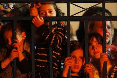 3. Дети евреев-ортодоксов смотрят на костер в Ашдод. (AMIR COHEN/REUTERS)