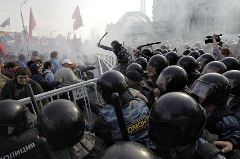 8. Несмотря на согласованные с мэрией маршруты на пути движения толпы оказалось оцепление. Началась сидячая забастовка. Некоторые участники шествия попытались прорвать цепи полиции. После этого произошли драки с полицией и массовые задержания участников акции.