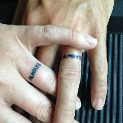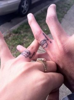 Путь к свадьбе и семейной жизни обычно начинается с обручального кольца. Парочки ходят по ювелирным магазинам, ищут подходящую модель, примеряют. Но сегодня все больше молодоженов выбирают нетрадиционный способ показать, что они уже нашли свою вторую половинку. Сейчас у многих женатых и замужних на месте обручального кольца красуется... татуировка! Более дешевый способ, зато чернила куда долговечнее, чем кольцо, которое можно потерять или просто снять.