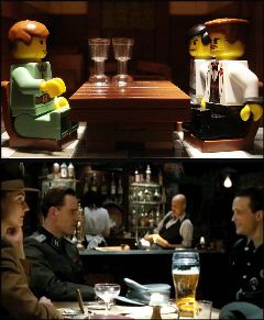 13. Эта полная напряжения сцена из фильма Квентина Тарантино "Бесславные ублюдки" кажется не такой напряженной в версии Лего. (Alex Eylar/Pacific Coast News, United Artists)