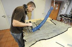 16. Следующая стадия: химчистка – чтобы изнанка меха стала одного цвета. Всем же приятно ходить в шубах из однородного меха.