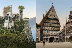 Замок в окрестностях Трехтингсхаузена и ратуша в Хильдесхейме.
